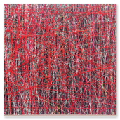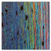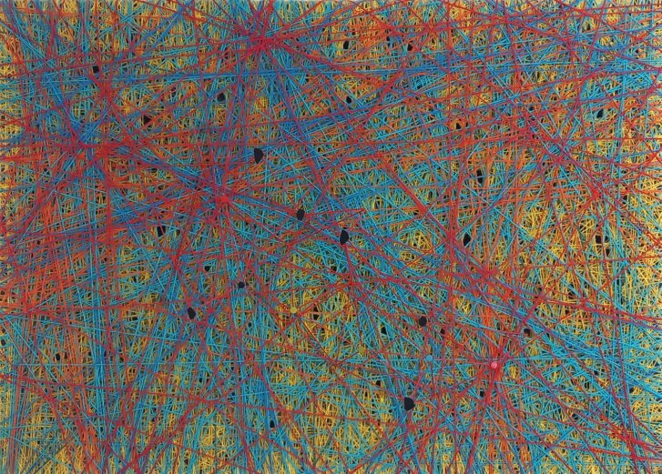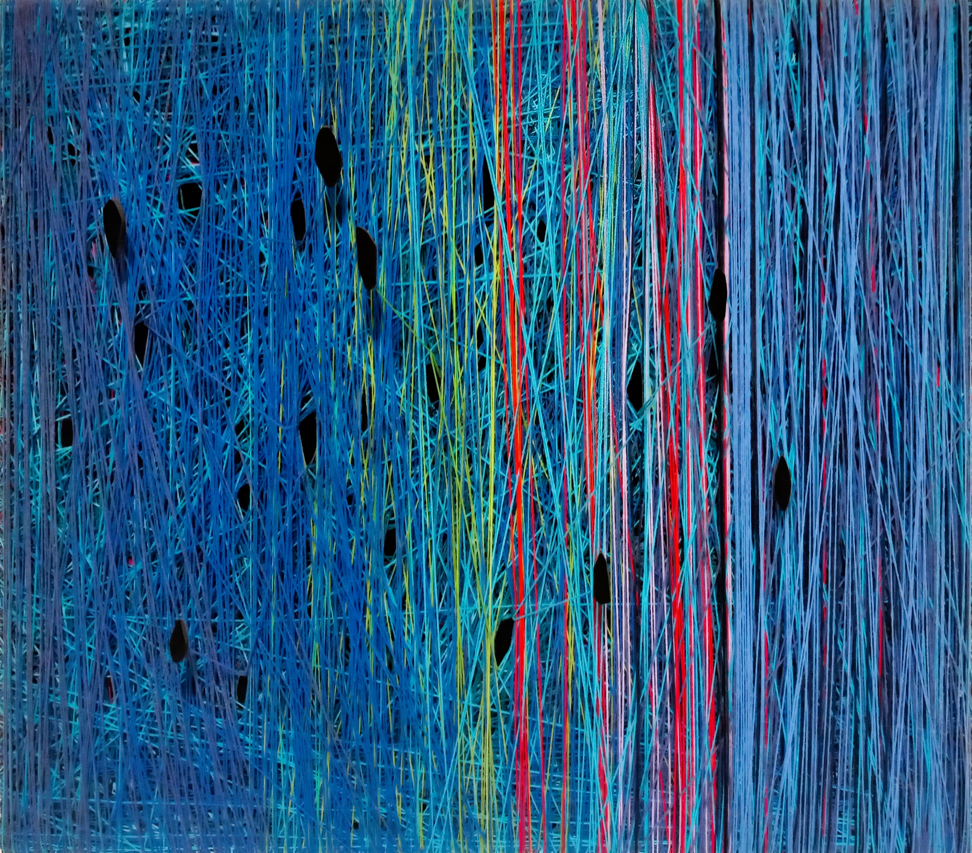 Mixed media (acrylic threads, brass metal structures, acrylic on wood)