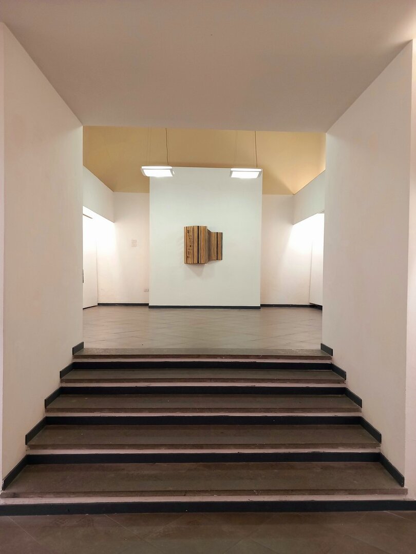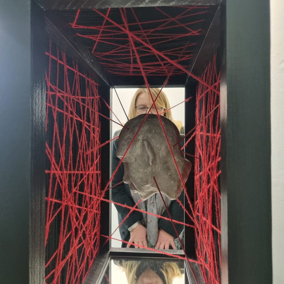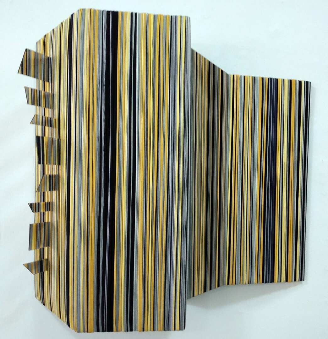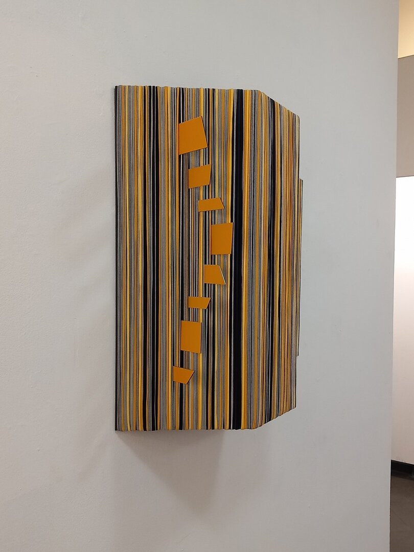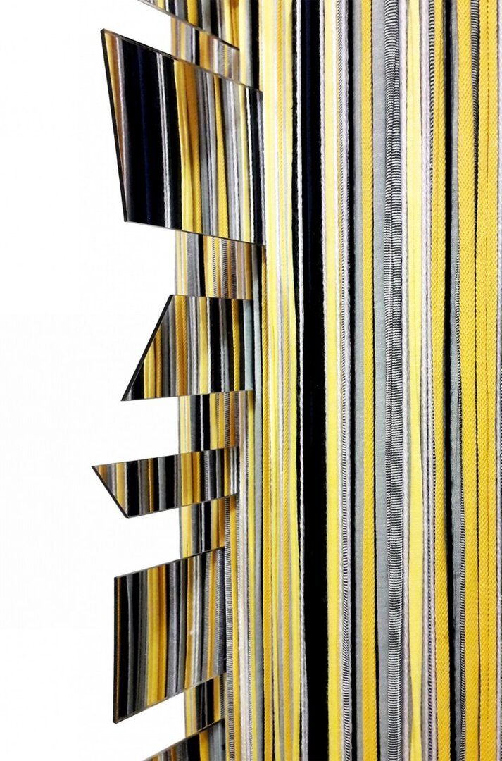 Mixed media (cotton ribbons, acrylic and brass threads, polyurethane, mirror, acrylic on wood)