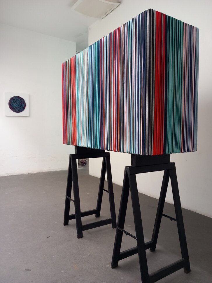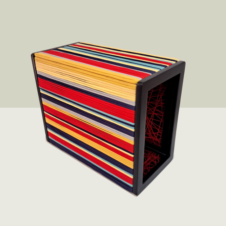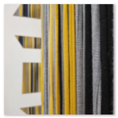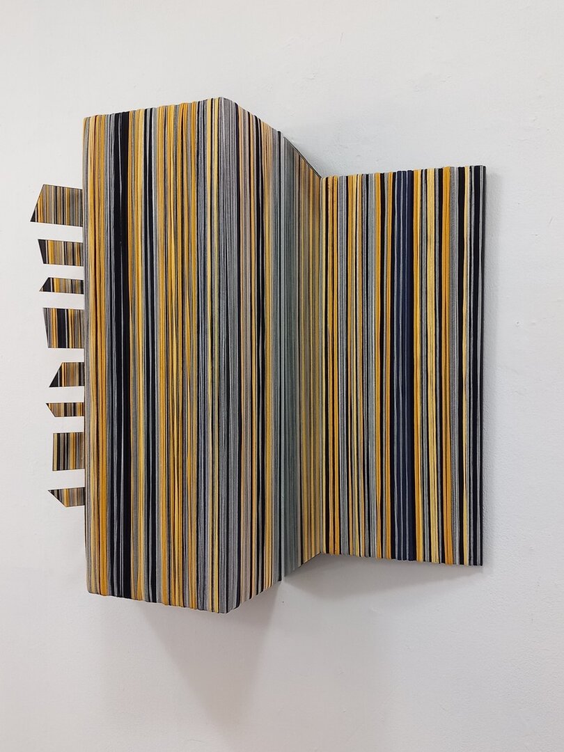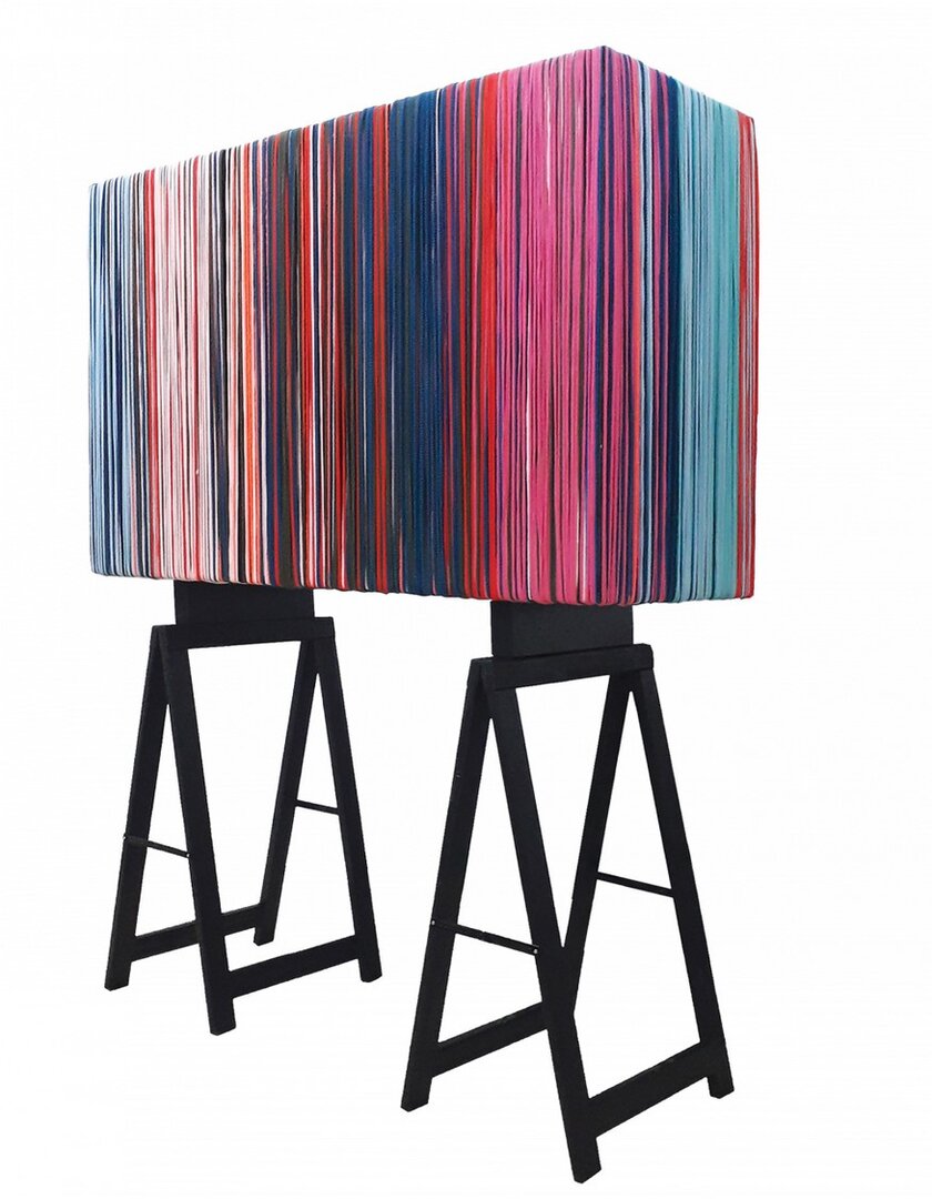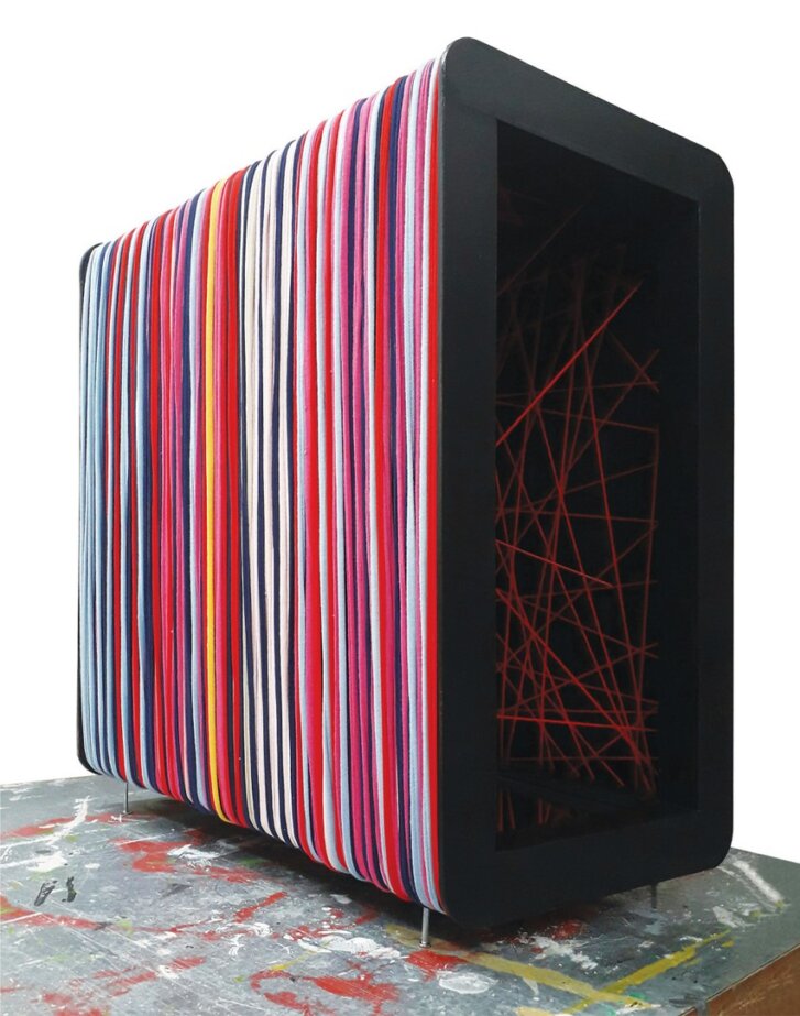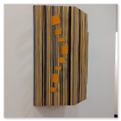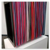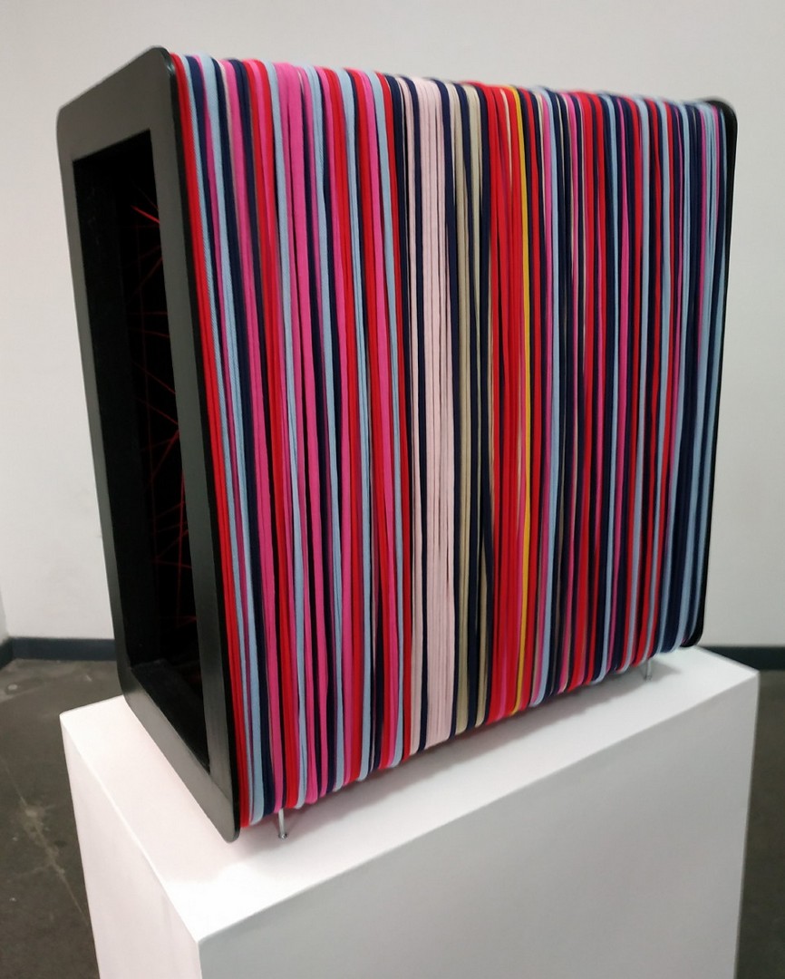 Mixed media (cotton ribbons, acrylic on aluminum inserts, MDF)