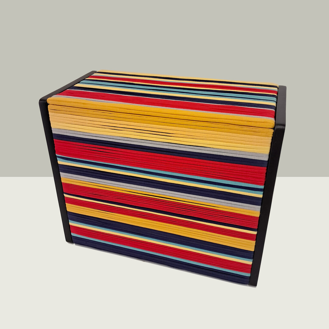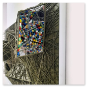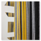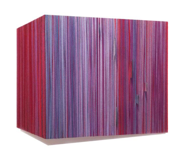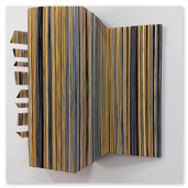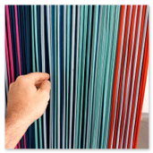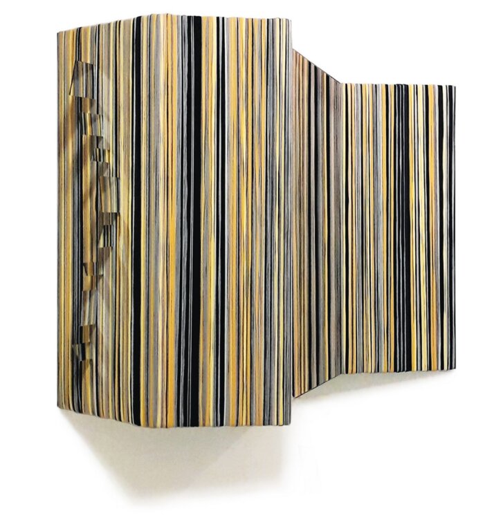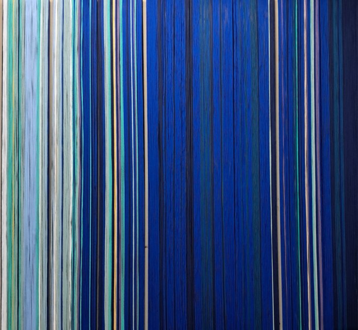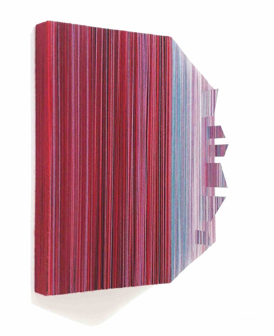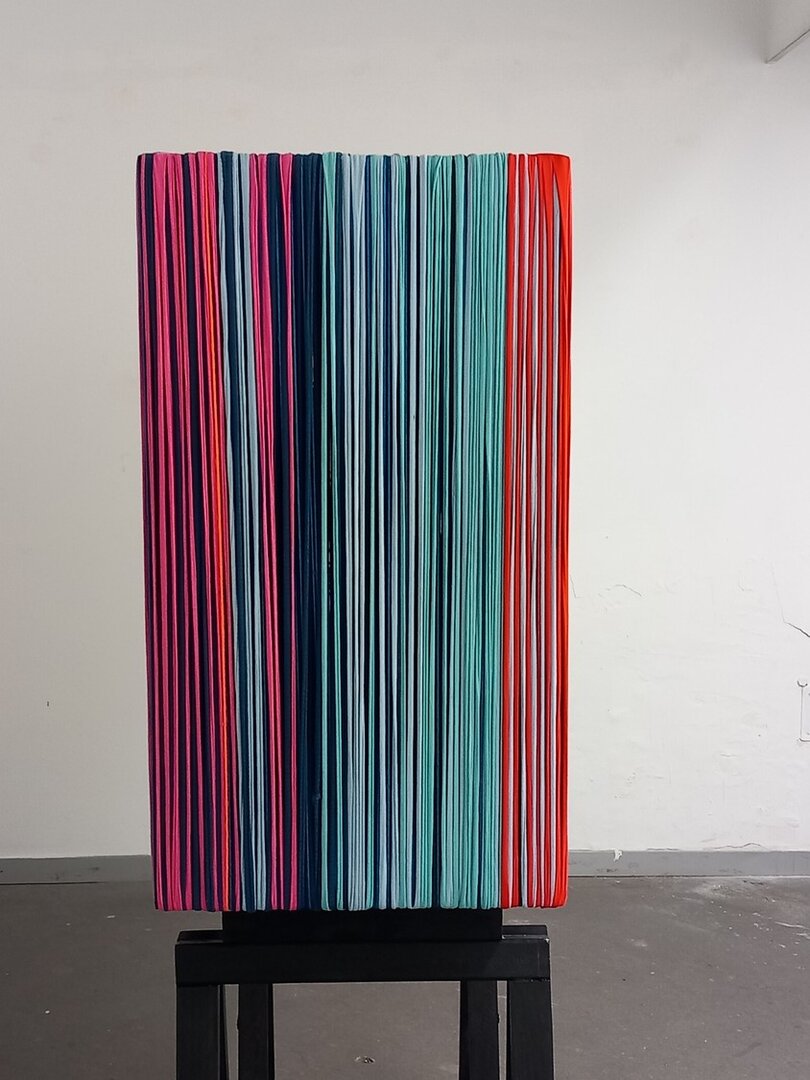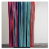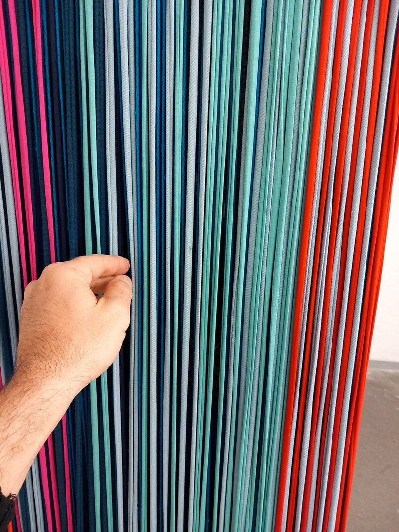 Mixed media (cotton ribbons, acrylic on aluminum inserts, MDF)