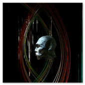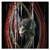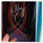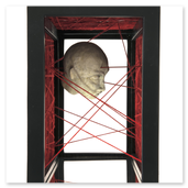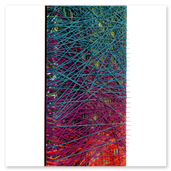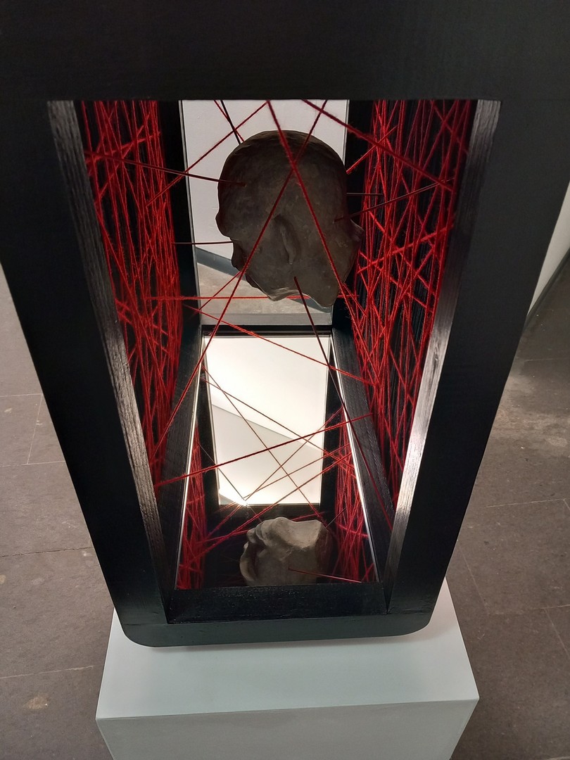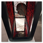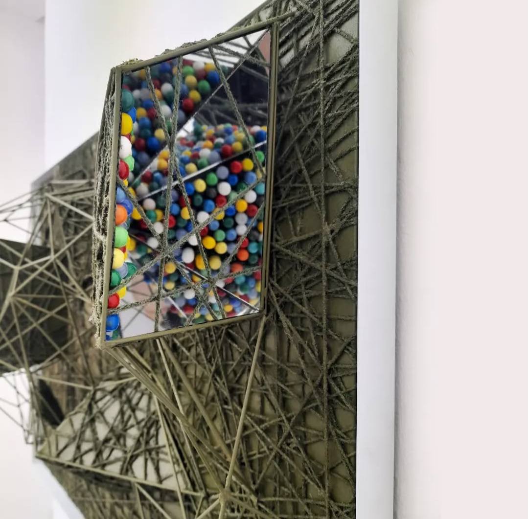 Mixed media (acrylic threads, mirrors, plastic inserts, acrylic paint, wood, aluminum frame)