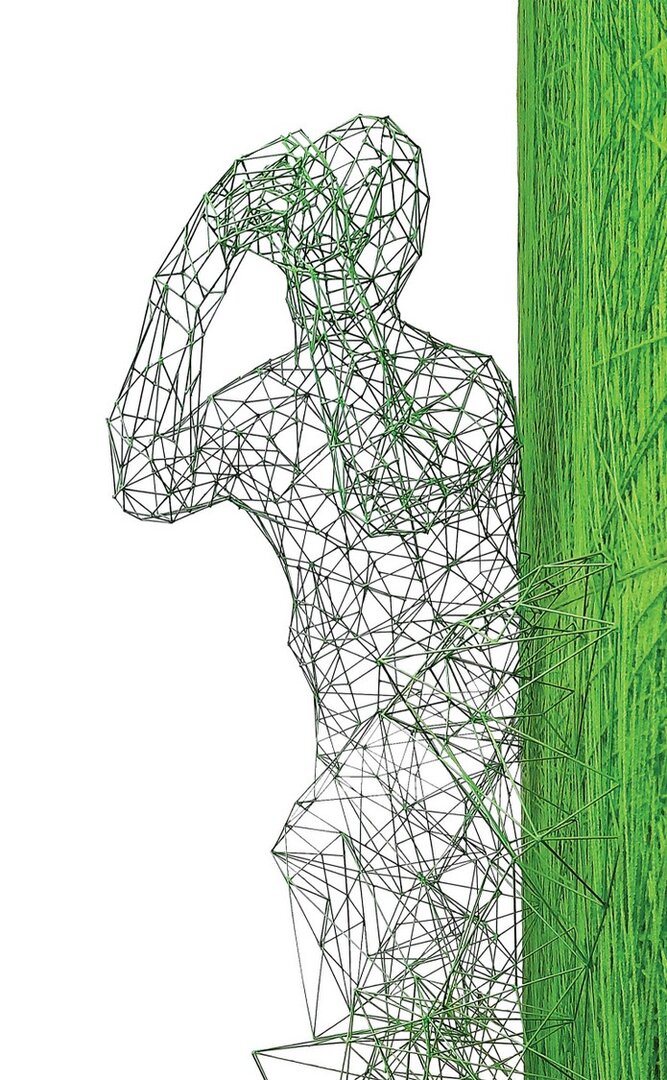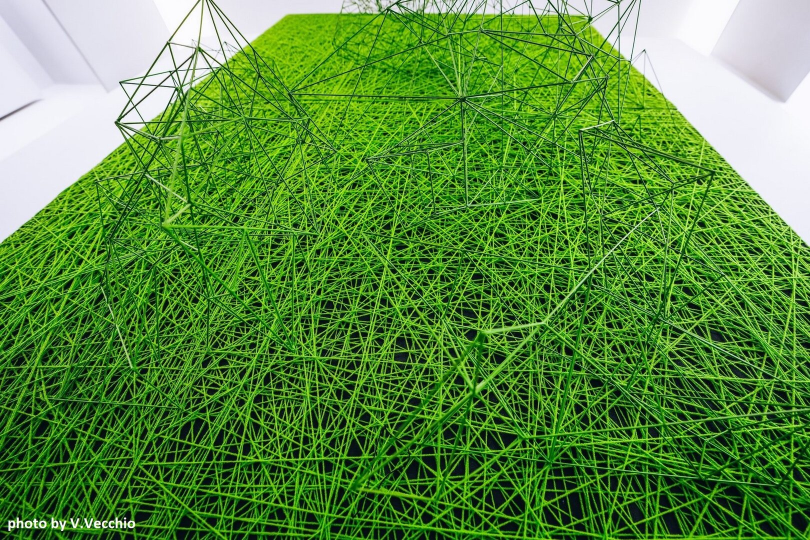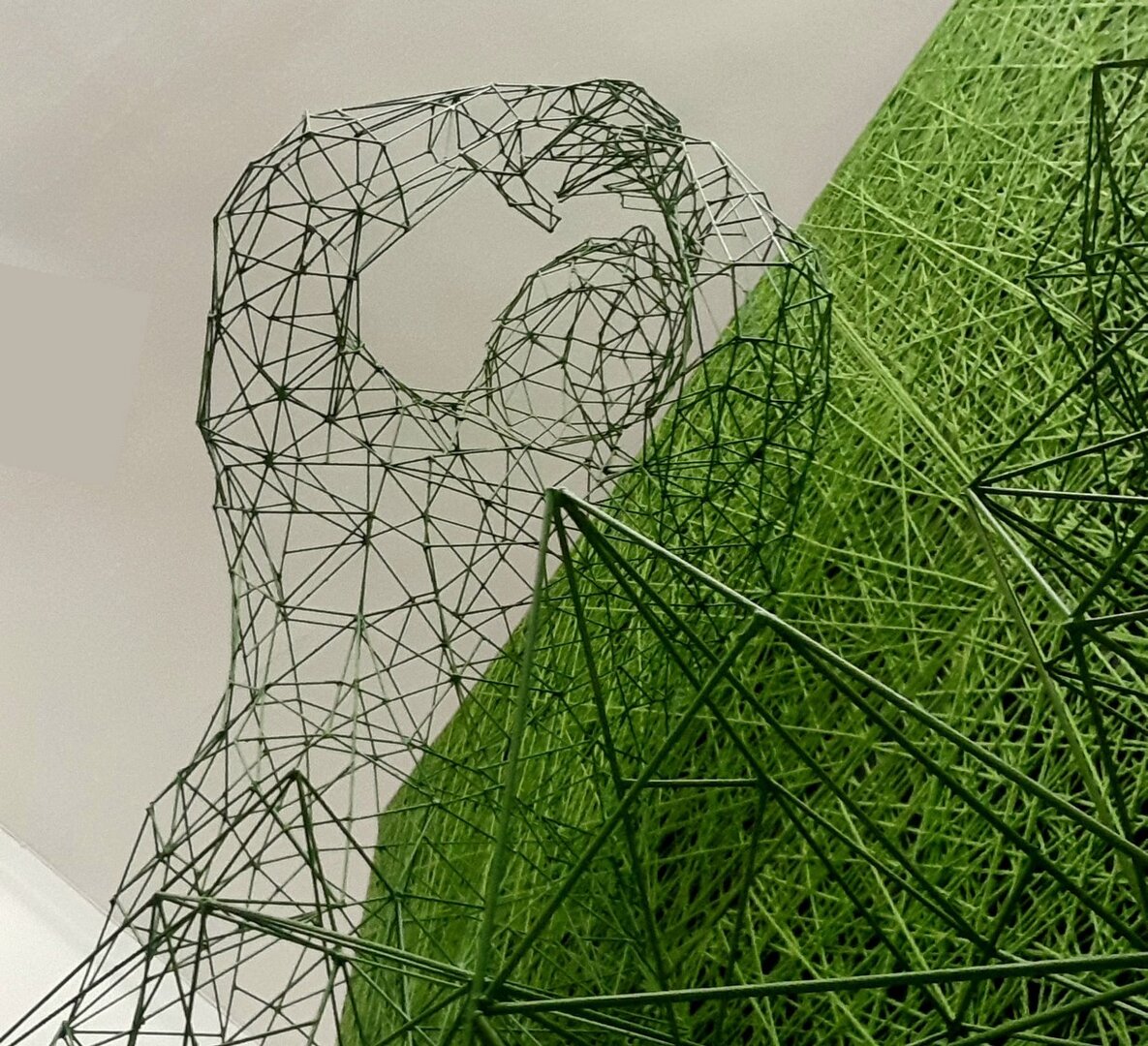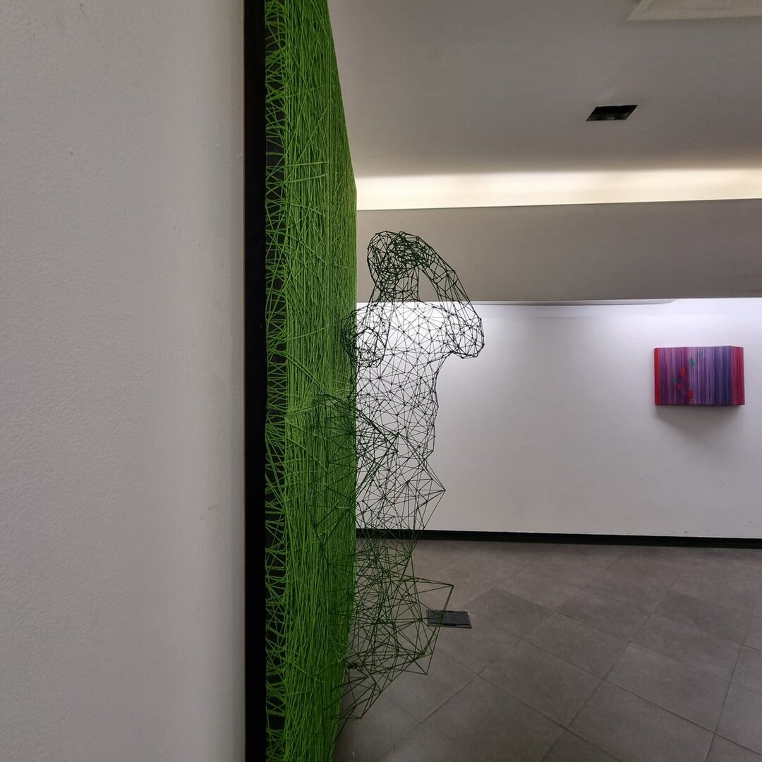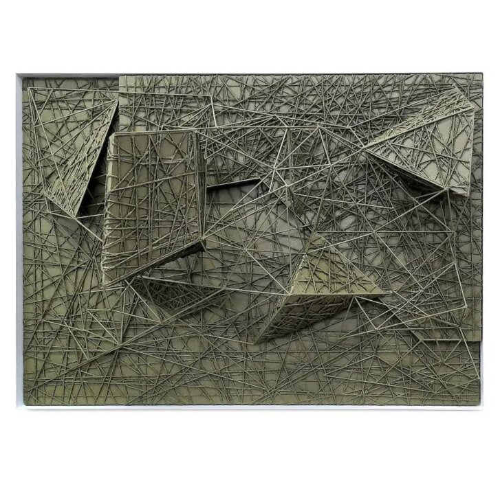 Mixed media (acrylic threads, brass metal structures, MDF)