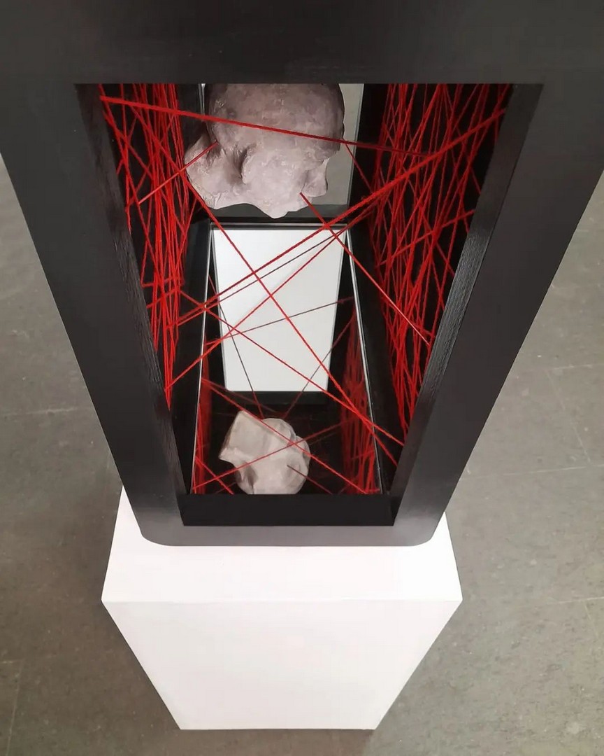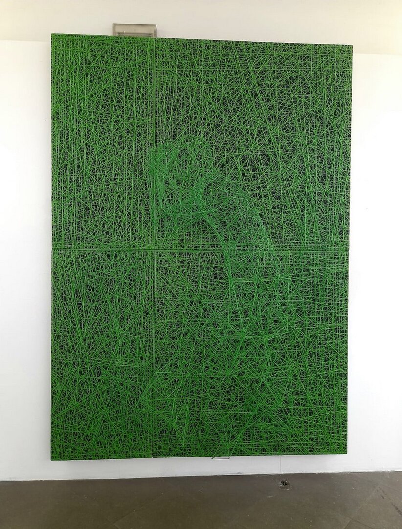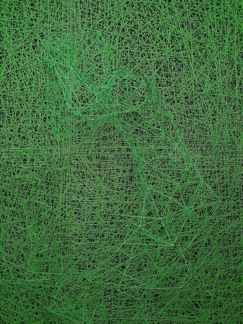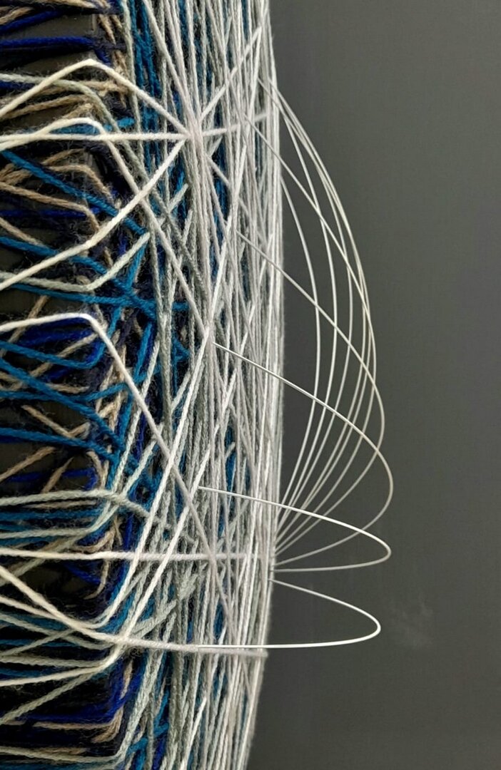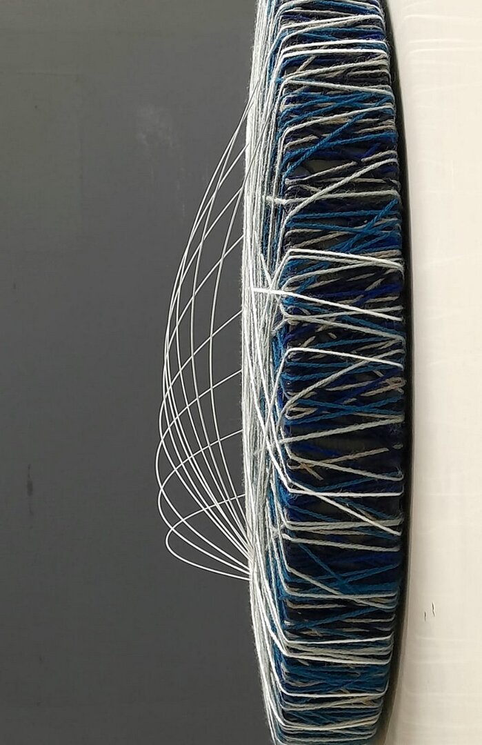 Mixed media (acrylic threads, cotton and steel threads on XPS and wood panel)