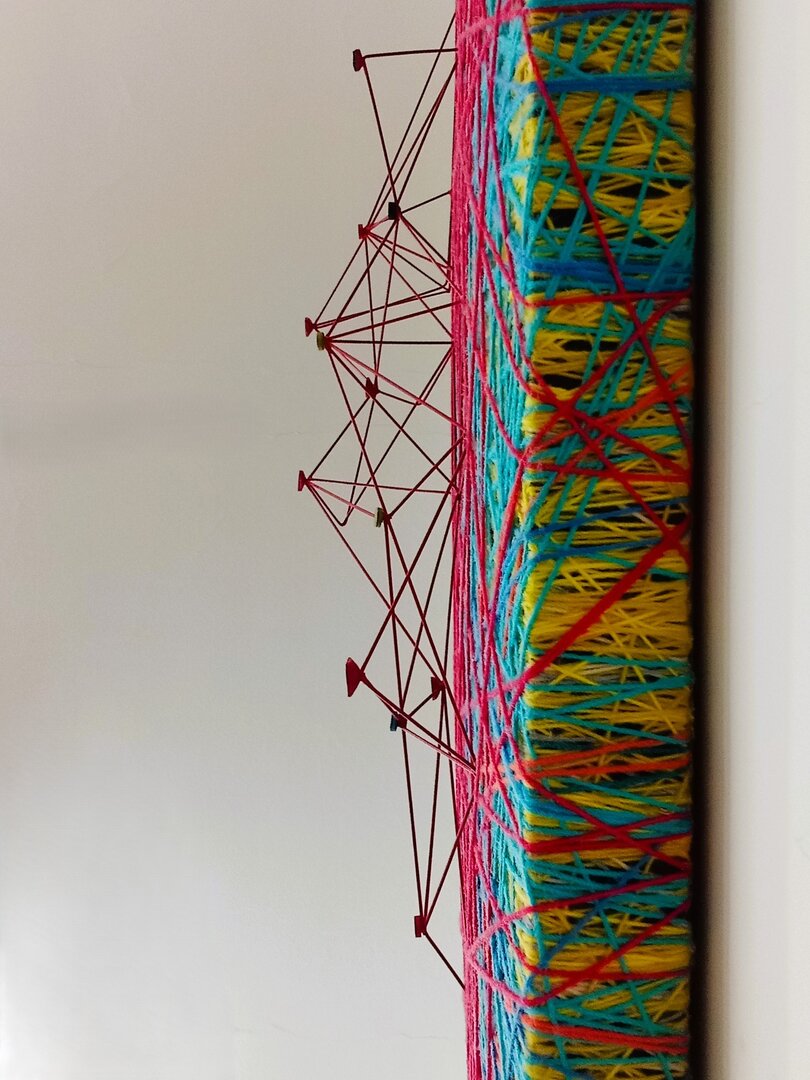 Tecnica mista ( fili acrilici, fili di cotone e d'acciaio su pannello xps e legno )