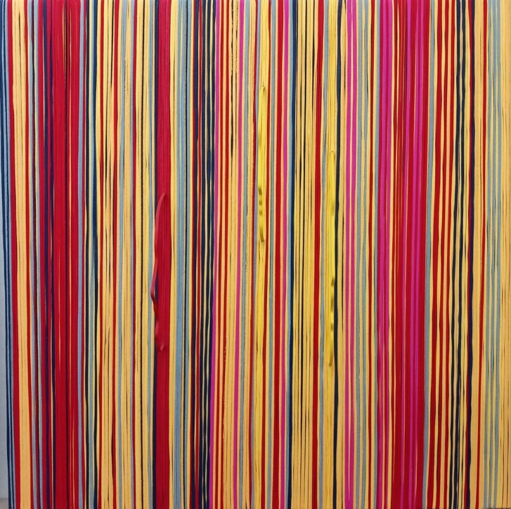Mixed media (cotton ribbons, acrylic on aluminum inserts and wooden panels)