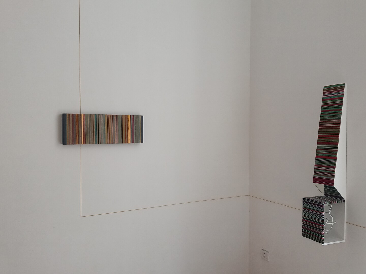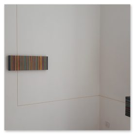 VERSO” is an artistic project born from the collaboration between Marco Adinolfi and Massimo Cicala, a four-handed work inspired by the text “The Walk” (Der Spaziergang) by Robert Walser. The famous Swiss author tackled many themes in this literary masterpiece: journey, solitude, observation, getting lost, appearances. Drawing inspiration from these concepts, the elaborated works invite the visitor not to stop at the aesthetic and chromatic completeness of a declared "minimal" geometry but to go further, approach the works with curiosity, desecrate their inviolability, discover that in those paintings there are volumes that invade the space, that what seems continuous is only a reflection, that there are more intimate "conditions" to consider, that there is more than the declared appearance. Lingering, waiting and recognizing that beyond the "image" there is more, there is the detail that can only be discovered if we consider curiosity an essential condition of our existence.
