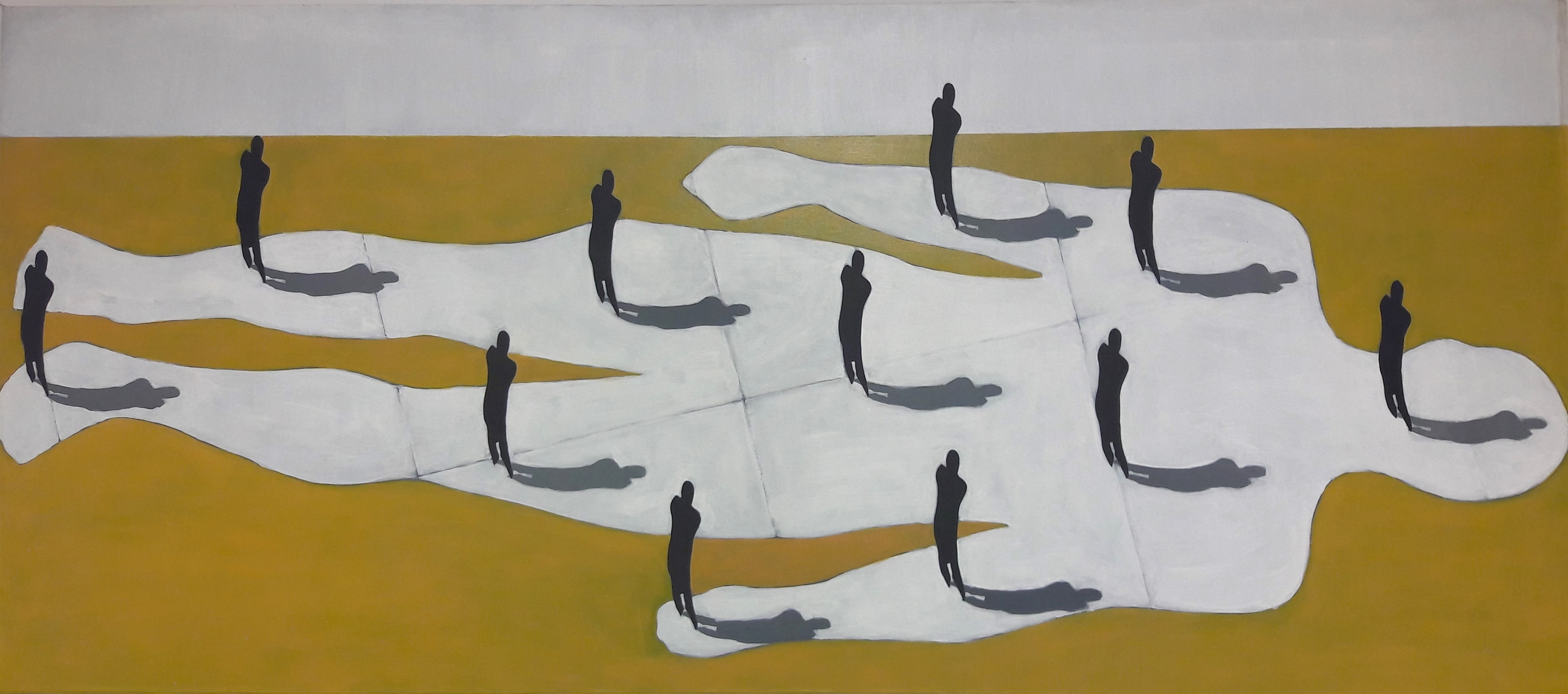 HombreS è un ciclo di opere centrato su una figura umana stilizzata, sempre accompagnata dalla propria ombra: una presenza costante che mette in discussione i confini tra individuo e riflesso, tra realtà e rappresentazione. Il titolo stesso – fusione tra hombres (uomini, in spagnolo) e ombre – evoca questa doppiezza visiva e concettuale.