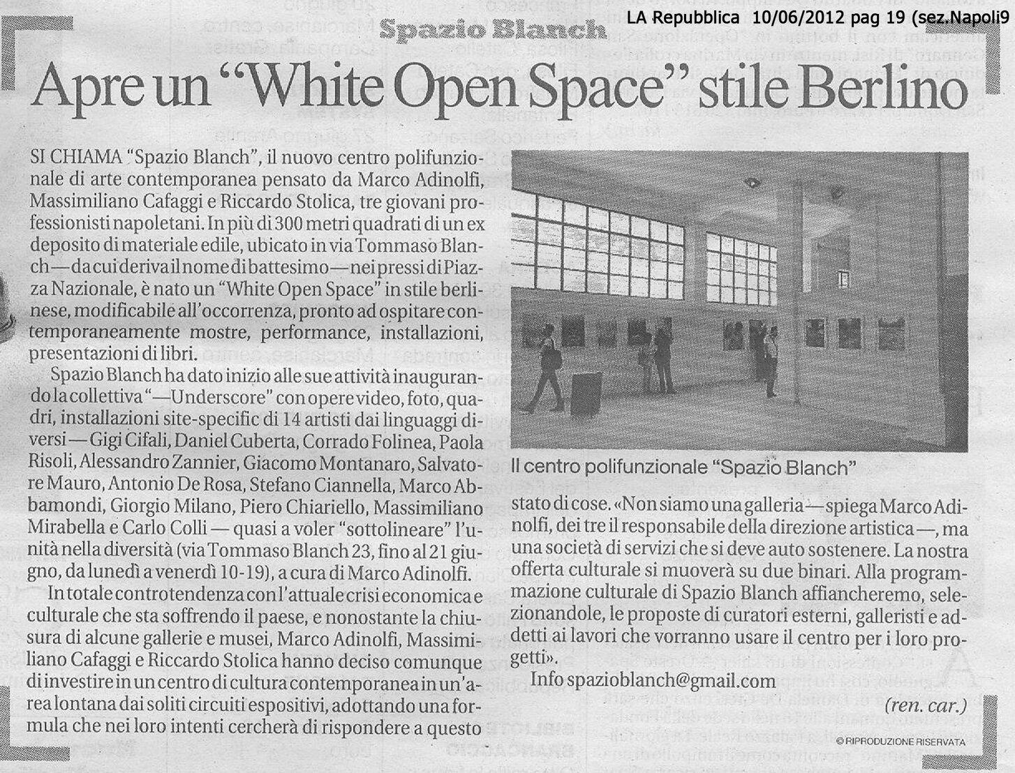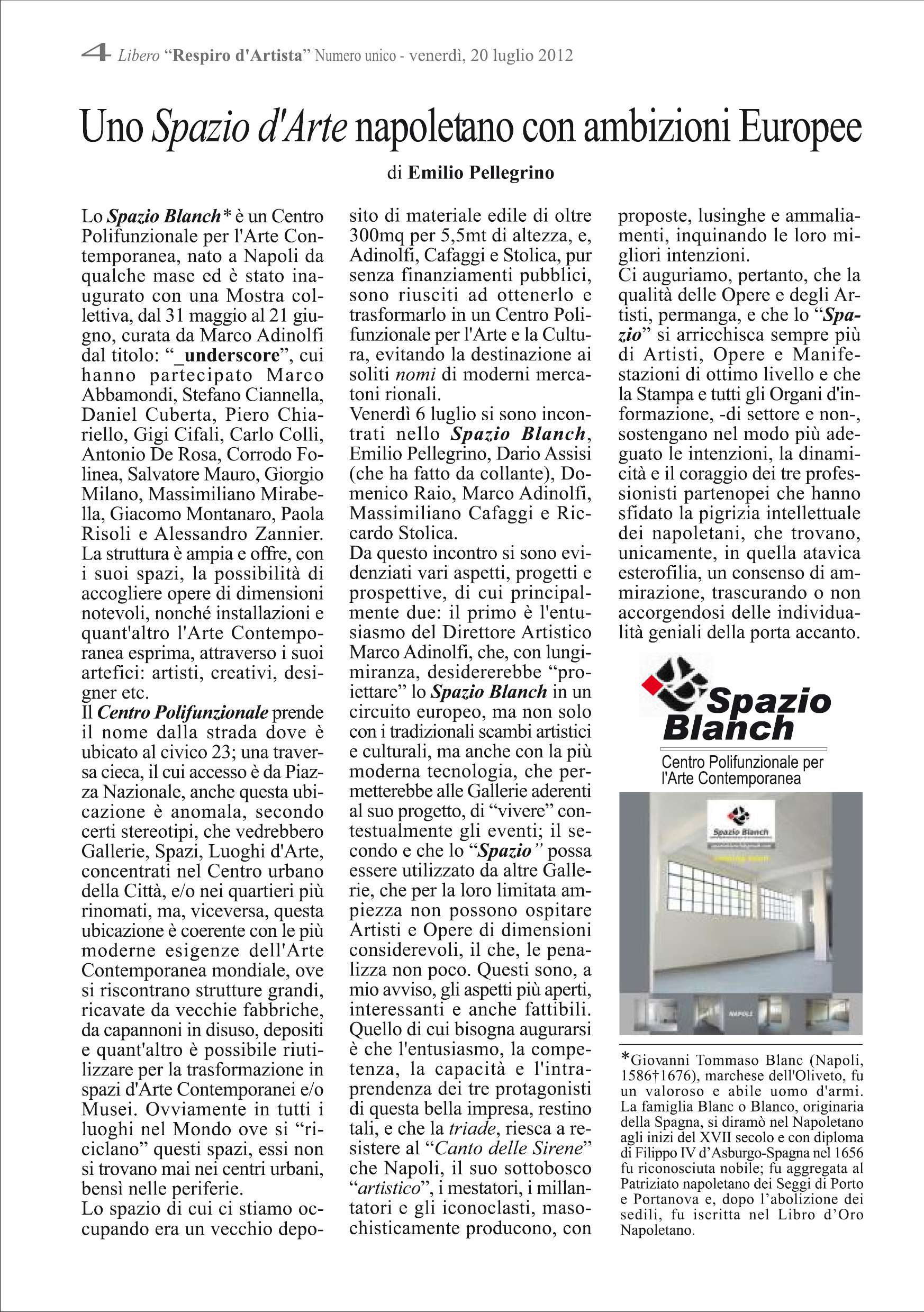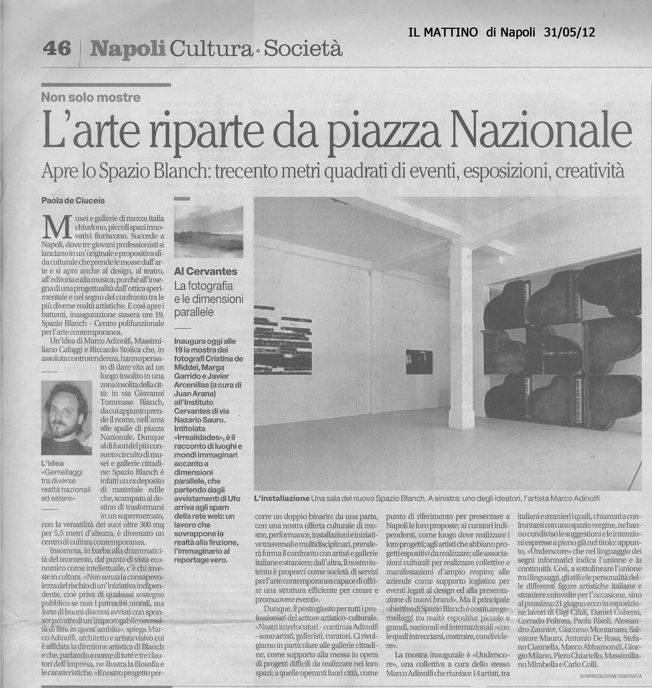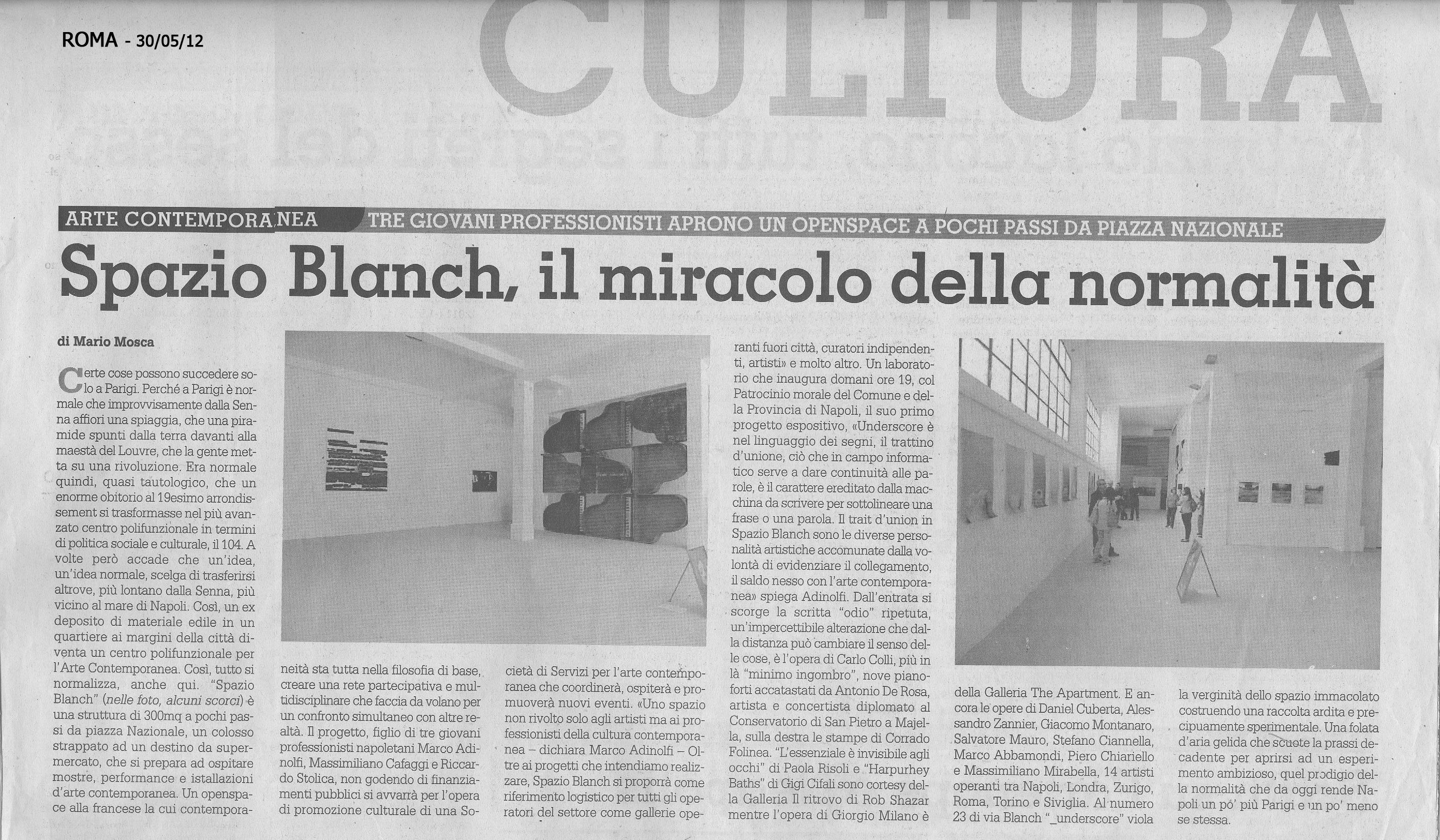 03/06/2012 di Patrizia Giordano - link" La mostra UNDERSCORE per inaugurare SPAZIO BLANCH "